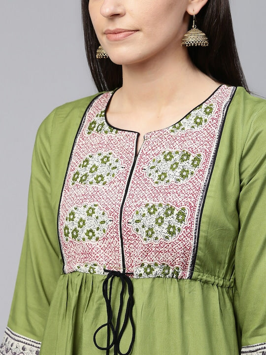 All about you Green & Pink Ethnic Motifs Printed Notch Neck A-Line Midi Dress