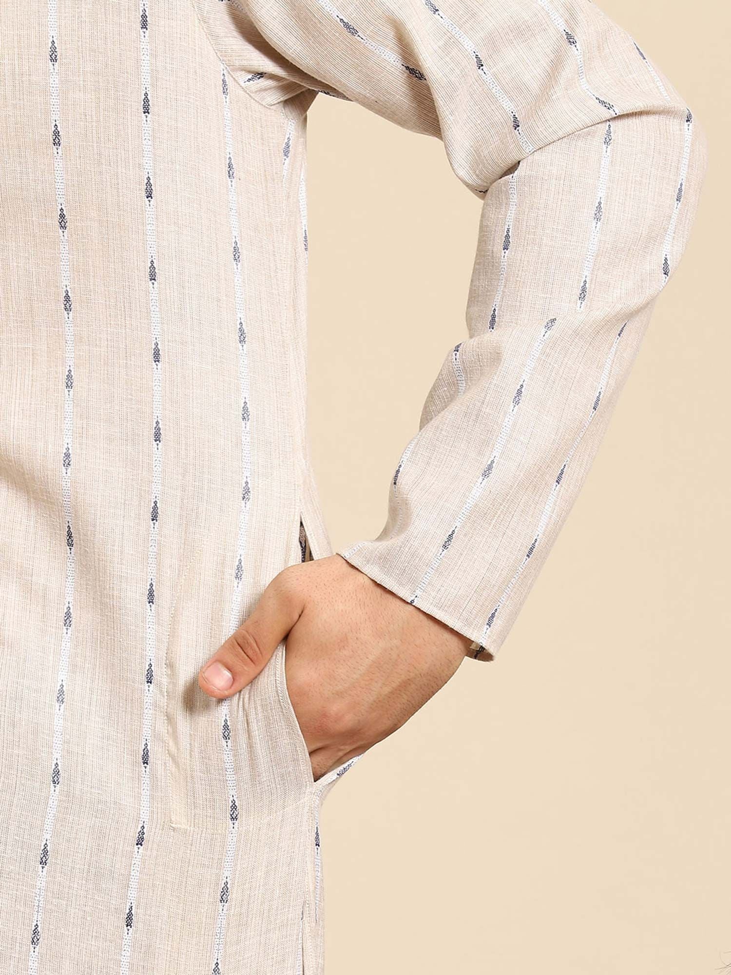 Amodh by Kisah Men Beige Kurta (Set of 2)