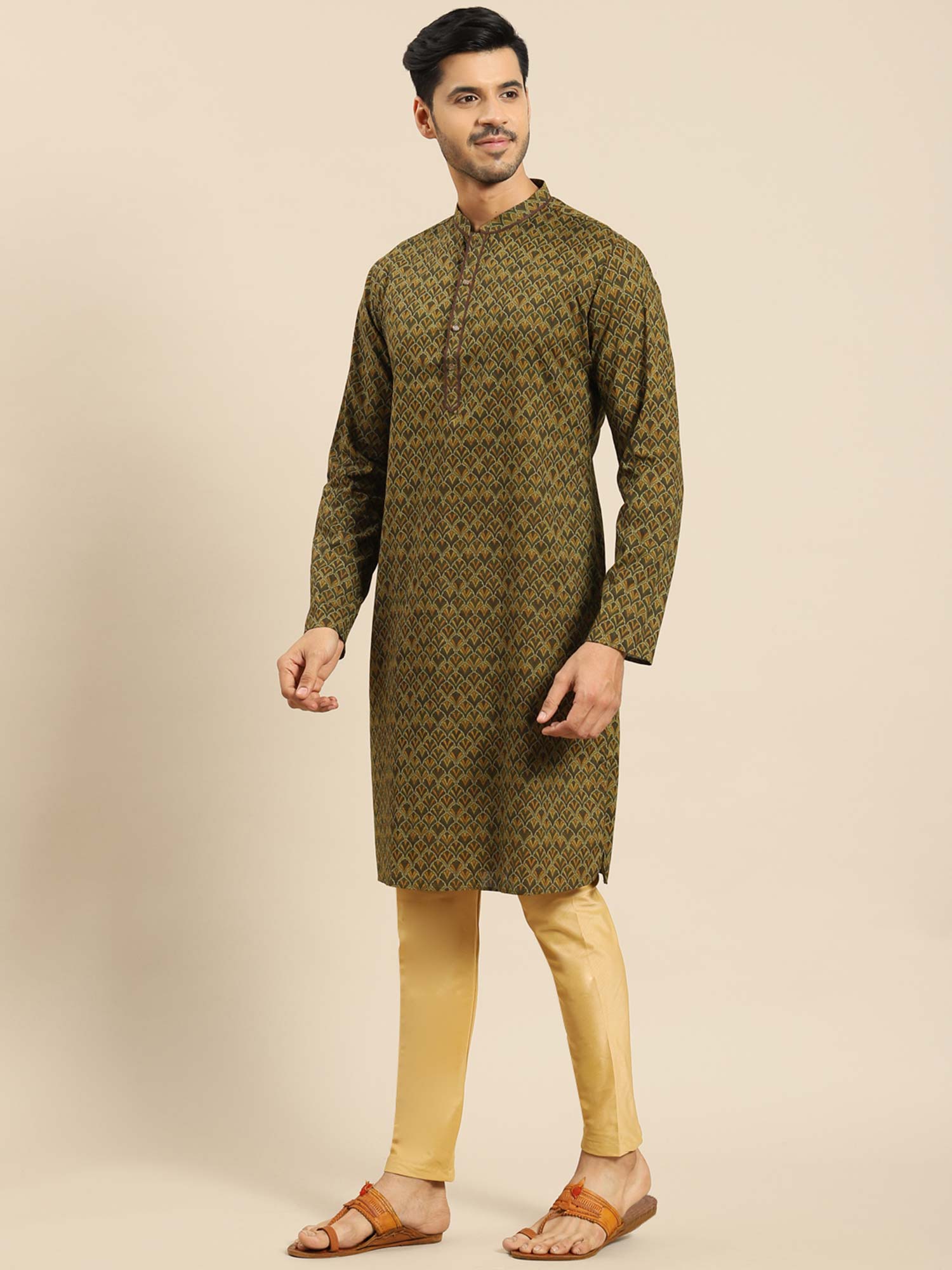 Amodh by Kisah Men Green Kurta (Set of 2)