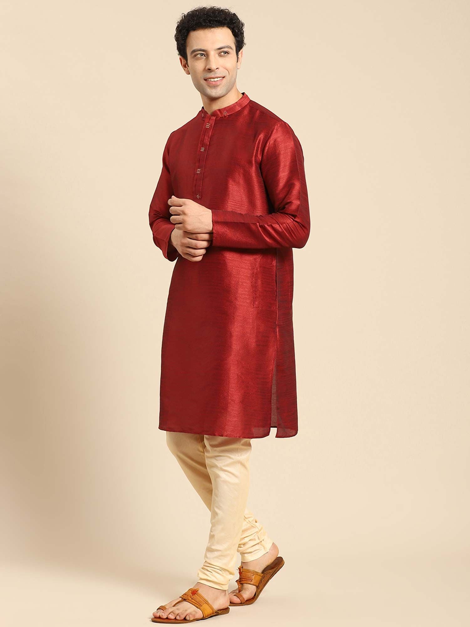 - Material: Crafted from a comfortable Cotton Blend, this maroon kurta from Amodh by Kisah is the perfect choice for festive occasions, offering a combination of style and comfort.