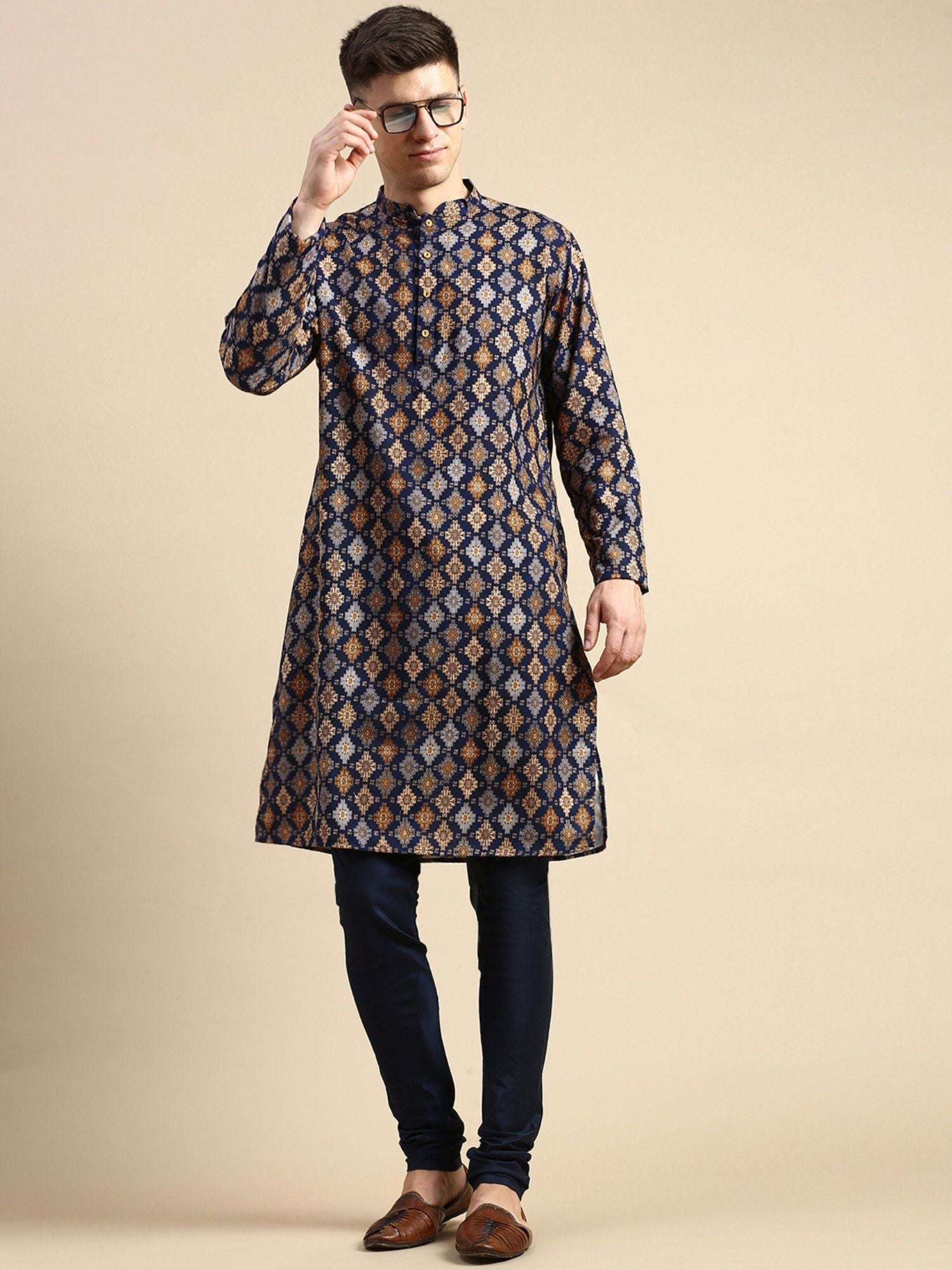 Amodh by Kisah Mens Navy Blue Kurta Churidar (Set of 2)