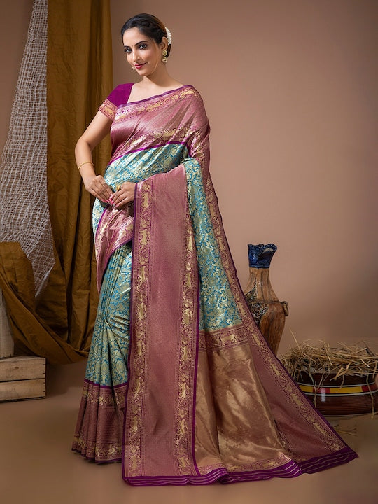 Anjaneya Sarees Ethnic Motifs Woven Design Zari Banarasi Saree