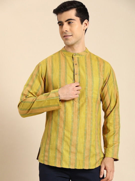 Anouk Men Yellow & Green Striped Flared Sleeves Kurta
