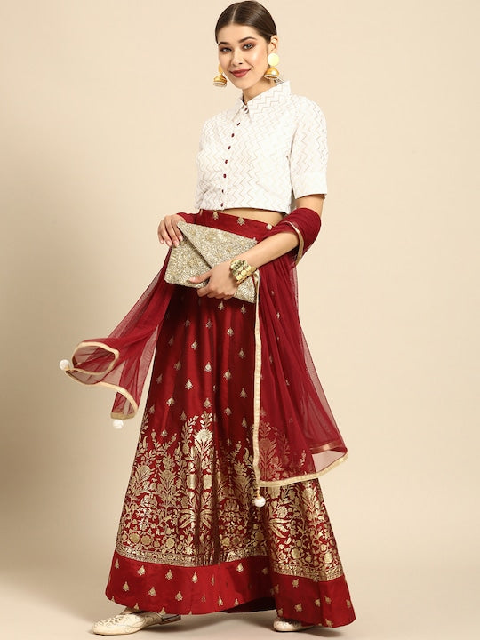 Anouk White & Red Printed Ready to Wear Lehenga & Blouse With Dupatta
