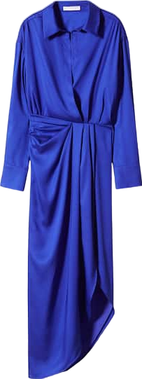 Side Slit Satin Dress - MANGO - Blue - UK 10