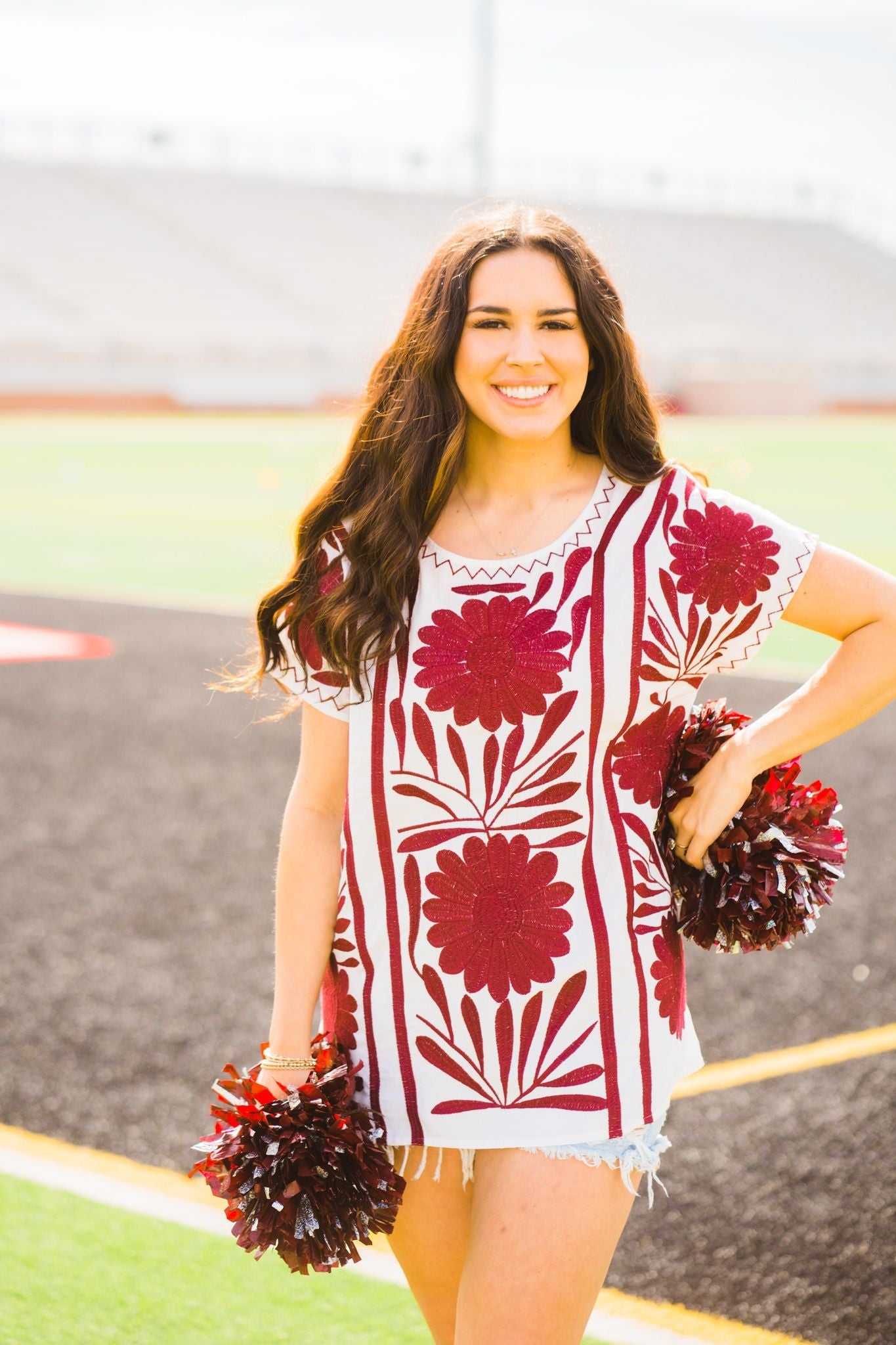 White with maroon large floral embroidery