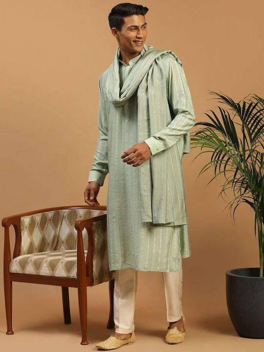 Shrestha By Vastramay Striped Sequinned Chanderi Cotton Kurta with Pyjamas & With Dupatta