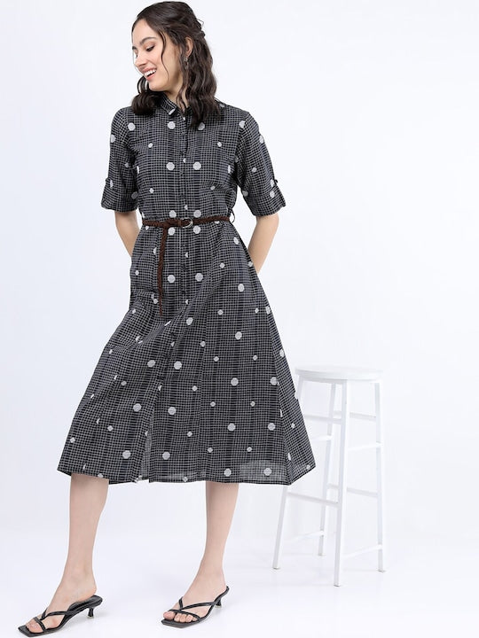 Vishudh Black Checked Shirt Dress