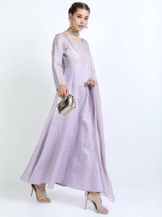 Vishudh Women Mauve Ethnic Motifs Printed A-Line Kurta With Dupatta