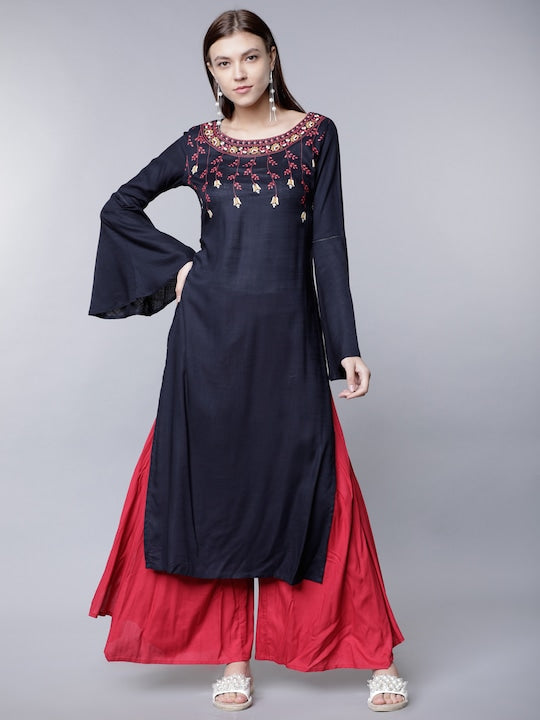 Vishudh Women Navy Blue & Red Solid Straight Kurta
